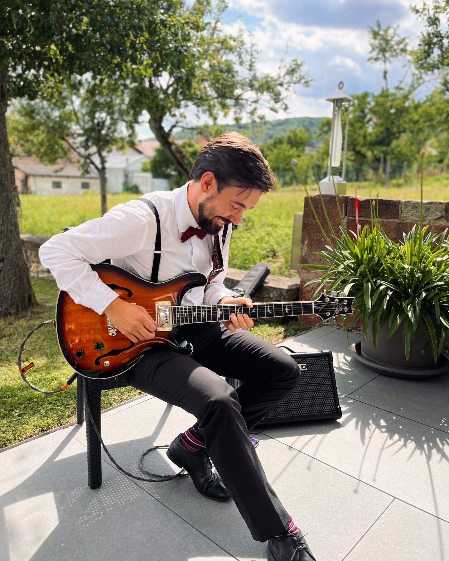 Mein gesamtes Equipment/Instrumente bringe ich alleine mit, um Deine Musik zu spielen. Das einzige was nötig ist, ist eine zuverlässige Stromquelle und ein Ort deiner Wahl wo ich spielen kann.